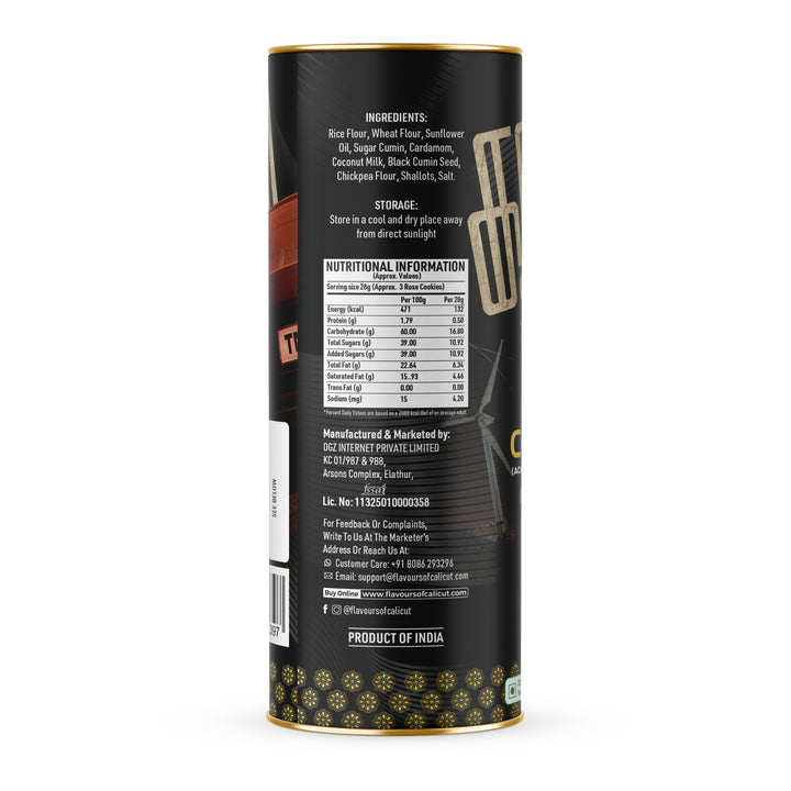 Golden, crisp, and lightly sweet, Flavours of Calicut Rose Cookies are handcrafted using traditional techniques to deliver the perfect crunch in every bite. A nostalgic snack loved across generations, these flower-shaped delights pair beautifully with your evening tea or coffee. Made without artificial preservatives or colours, they offer a simple yet satisfying indulgence - ideal for everyday snacking or festive gifting.